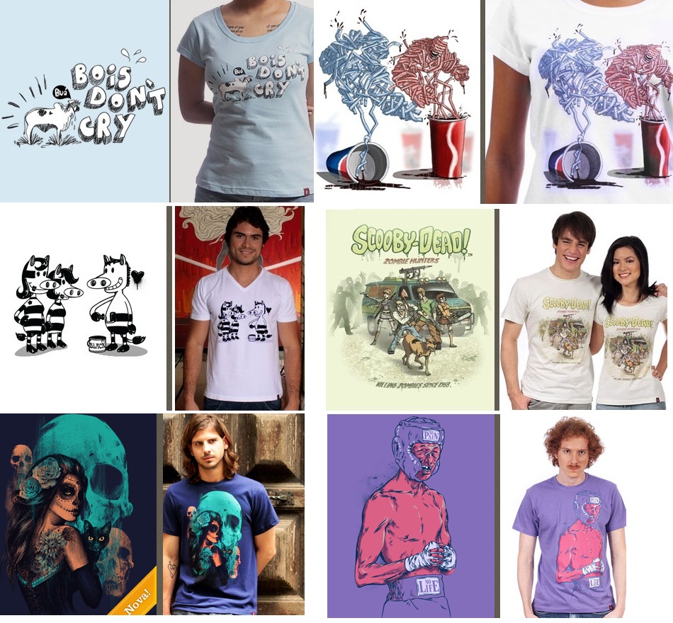 E além de funcionar como um site de vendas de camisetas (veja a seção “Catálogo” no site), você também pode se cadastrar pra votar nas estampas enviadas por gente de tudo que é lugar, e que podem virar no futuro novas estampas. Tem cada uma lindona ! Pra acessar essa área de votação, basta ir na seção “Vote”. Eu curto tanto essa área de votação que volta e meia visito o site só pra dar minha opinião sobre estampas que me motivariam a comprar uma camiseta.