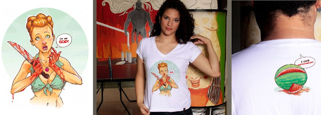 Aquela melancia fica no verso da camiseta.