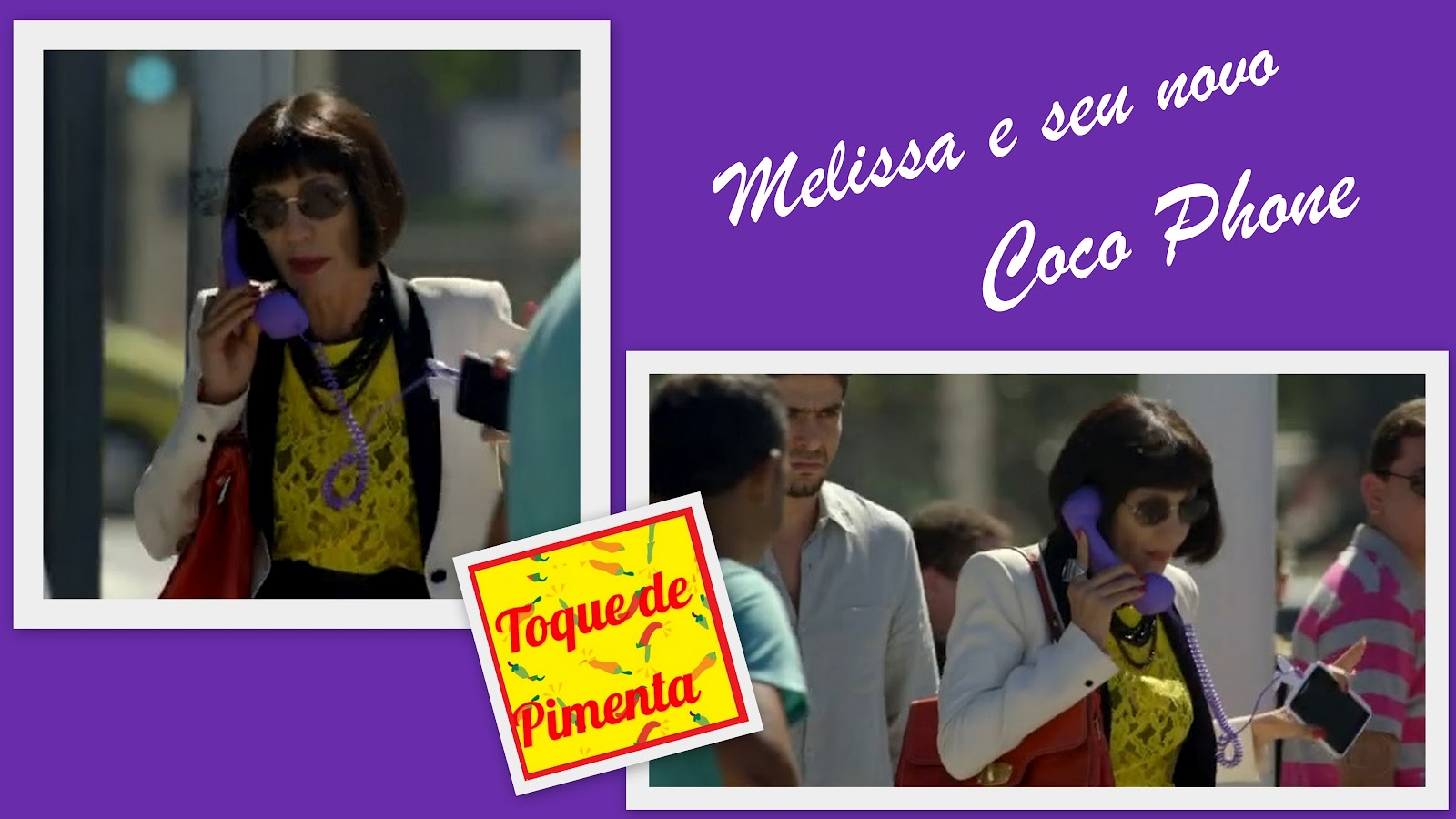 Achei interessante trazer essas imagens pra quem pode ter pensado que o Coco Phone era pra ser deixado em casa e ser usado no escondidinho do escritório. Que nada … é pra carregar na bolsa mesmo. Se você faz o estilo ousado (não precisa ser nem tão ousado quanto o da Melissa) te joga no seu Coco Phone …