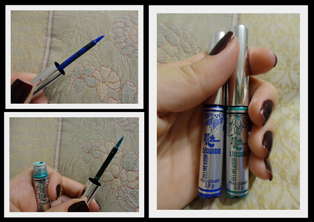 Eu adorei os delineadores. Eles são super fáceis de aplicar. Permitem um traçado bem fino. Só é importante tirar o excesso do aplicador antes de aplicar, pois senão ele pode escorrer e arde pra caramba (sim, aconteceu uma única vez. Mas depois que comecei a tirar o excesso, a aplicação foi super fácil). A secagem é super rápida.