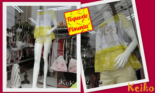 A keiko também colocou pra vitrine esta blusinha maravilhosa, de corujinha, num tom de amarelo que está também super na moda: