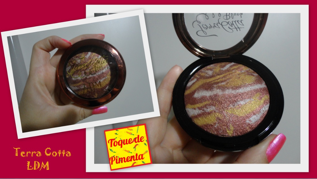 E essa paletinha é um Terra Cota com uma misturinha de dourado com bronzer e iluminador. Achei bem lindo. Apesar que minha foto está péssima pra mostrar na pele rsrs.