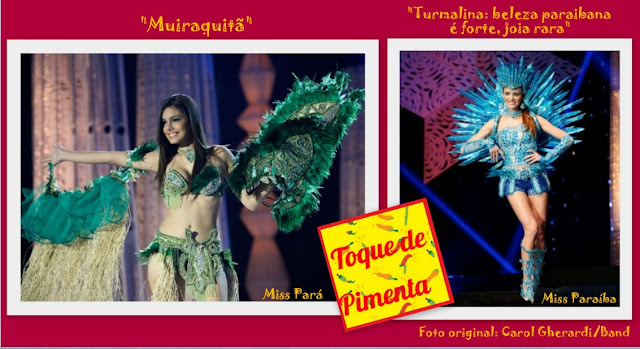 E é neste sábado a final do Miss Brasil 2012. O concurso será transmitido pela Band e inicia as 22:15. Na verdade o concurso já vem ocorrendo, mas hoje é a final-finaleira mesmo. E no post de hoje vim compartilhar com vocês aquilo que apareceu no desfile com trajes típicos do Miss Brasil 2012, que é uma das fases que já ocorreu (ontem).