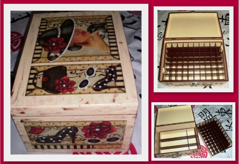 Caixa para 70 esmaltes. Valor: R$ 140,00. Super feminina e com um ar mais rústico mas doce.