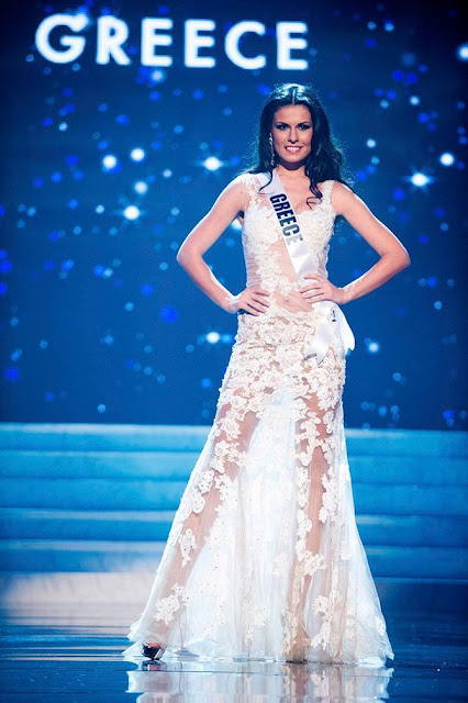 Bom, mas já que estamos falta de total falta de noção, o que falar deste vestido abaixo ? Nós sabemos que a Grécia tem passado por momentos difíceis, afinal já são 6 anos de crise. Mas definitivamente poupar em tecido não é a melhor maneira de devolver à Grécia o seu glamour. Definitamente, um dos maiores fiascos da noite.