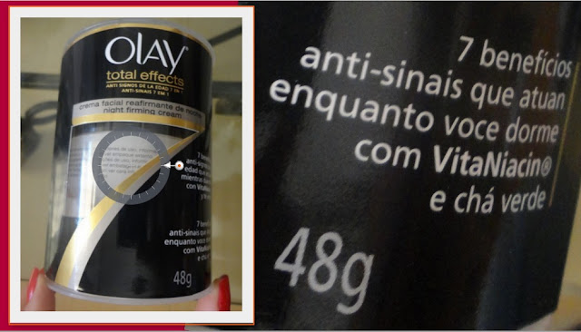 O Creme anti-sinais Total Effects da Olay é um creme de uso noturno e tem efeito firmador, prometendo uma hidratação antienvelhecimento. Tudo isso devido ao seu composto de um complexo de vitaminas, antioxidantes e proteínas do trigo.