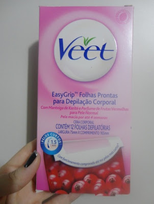 Hoje vou compartilhar com vocês minha experiência com as folhas de depilação da Veet. Um produto pra se fazer depilação em casa mesmo. São 12 folhas depilatórias (na verdade vem 6 grudadas uma na outra) já empapadinhas de cera fria. Basta ler o verso da embalagem pra se empolgar visto que o processo de depilação parece bem simples.