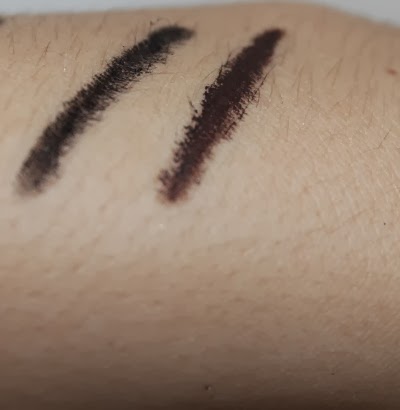 Comparem com uma passada na linha d’água apenas, entre o Avon e o Océane. Reparem como no lápis da Avon aparecem algumas pequenas falhas ao longo do traçado. E olha que esse é um dos meus lápis para olhos preferidos (é aquele que vem com a espuminha do outro lado pra esfumar). Já o lápis da Océane produz um traçado negro contínuo, sem falhas e mais reluzente. Além disso adere bem melhor.