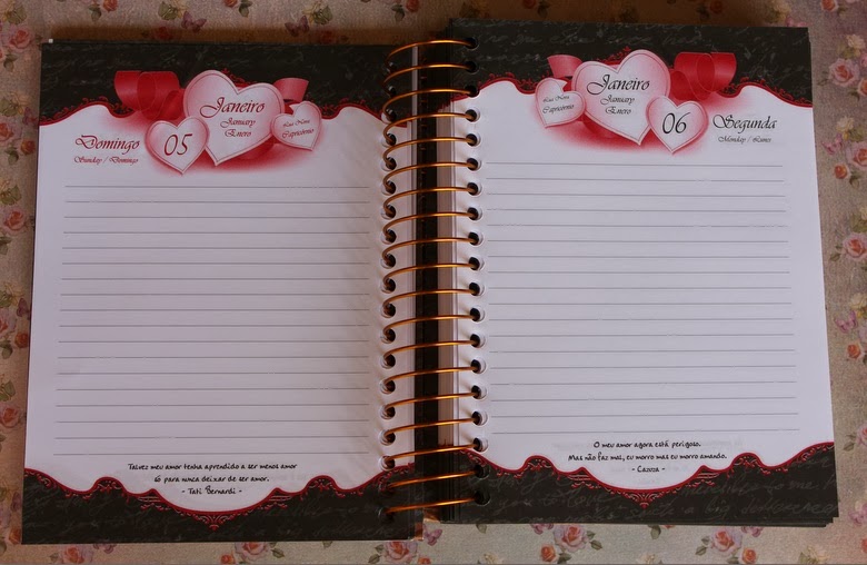 E foram essas as minhas agendas eleitas pra esse ano. Uma linda e cheia de amor em cada página pra atrair bons fluidos pra esse ano, que será usado para os assuntos mais diversos do meu dia-a-dia e a outra, pequerruchinha e prática, pra poder carregar pra todo canto sem dó e pra uso exclusivo do registro de idéias pro blog.