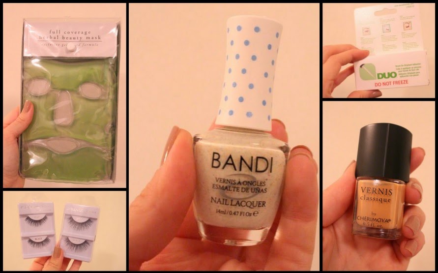 Essa máscara é daquelas de colocar na geladeira, indicada pra pele cansada, e custou $ 10,00. Cada case de cílios custou $ 3,00 na Jung. A cola Duo (essa é um lançamento segundo a vendedora, vem com aplicador) custou $ 10,00. O esmalte da Cherimoya custou $ 1,50 e esse Bandi custou $ 9,00. Achei bacana esse Bandi pois ele é parecido com umas versões lançadas recentemente no Brasil, onde o esmalte tem alguns minipigmentos dispersos.