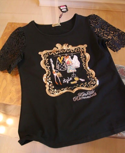 Também comprei uma blusa toda trabalhada nos paetês e rendinha nas mangas. Amei a blusa e já usei e abusei dela na minha viagem de férias. Paguei $ 32,00 dólares. Aliás, tinham várias roupas bacanas na S.A. Shop.