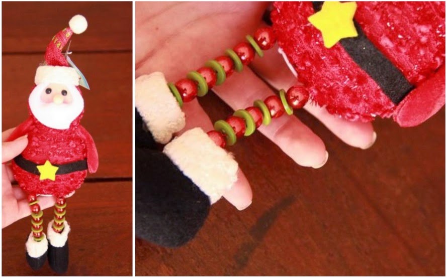 Bom, depois disso parti pro Plus 668. Era minha última opção pra encontrar uma guirlanda que não fosse muito grande nem cheia de enfeites. Não encontrei, mas achei esse lindo enfeite de Papai Noel ! Olha que amor as perninhas dele, feitas de bolinha de natal (tem que ter cuidado pra não quebrar).