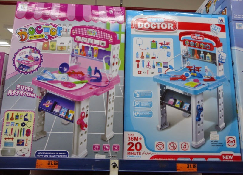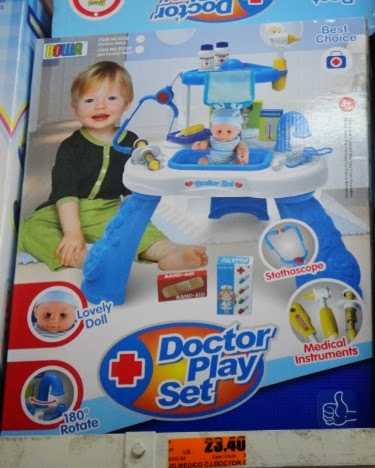 Outras estações que achei muito legais foram os consultórios médicos de brinquedo. Esse abaixo vem em 2 versões: em azul e em rosa: