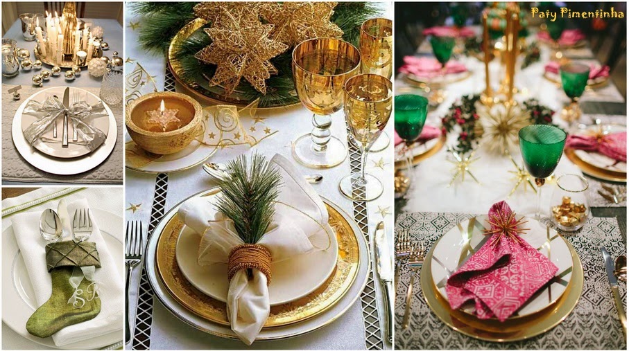 Outra maneira de incrementar a decoração da sua mesa de natal é dar uma atenção especial aos guardanapos. Se você tem bonitos porta-guardanapos escondidinhos em algum lugar da casa, chegou a hora de usá-los ! Caso não tenha, você pode improvisar: você pode fazer laços com aquelas bonitas fitas natalinas que usamos para embrulhar os presentes, prender o guardanapo com uma fitinha simples e acrescentar um raminho verde ou mesmo uma flor pra cada convidado; um lacinho com fita simples de cetim também já dá um charme especial e pra deixar o cenário ainda mimoso posicione junto uma pinha ou uma bola de natal; use a criatividade !