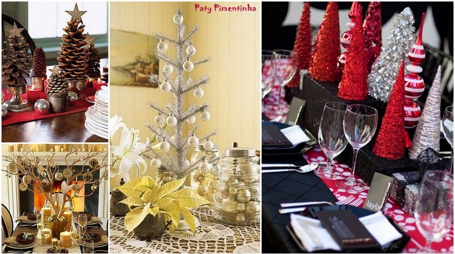 Essas mini-árvores podem ser facilmente encontradas em lojas de departamentos. Se o momento de compra já passou, apele pra alguma que você já tenha colocado na estante e deixe-a enfeitando o momento da ceia. Você pode substituir ainda por algum outro enfeite natalino bem típico que já esteja pela casa. Papai noel, duende, qualquer enfeitinho que esteja dando sopa será bem vindo para enfeitar a mesa.