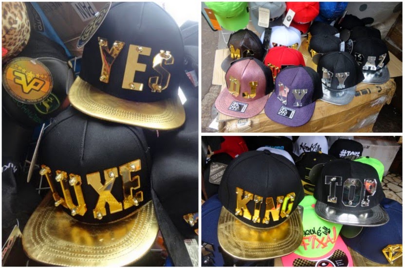 Pois bem, no fim de ano eu havia visto uma apresentação de dança onde o pessoal que dançou Stiletto usava bonés mega descolados e com palavras espelhadas. Até então eu não conhecia esses bonés mas como eu amo tudo que é super diferente, me encantei. E não é que me deparei com eles em plena luz do dia, nos camelôs do Paraguai ?