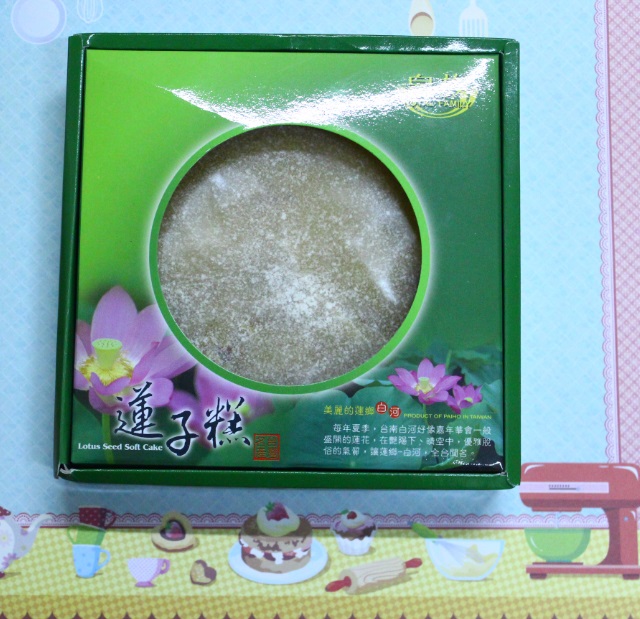 Já o outro produto que comprei foi esse bolo super exótico: Bolo de semente de Lótus. Bom, Lótus é uma flor, então pensar num bolo de flor já deveria ter sido um alerta pra mim. Mas como eu eventualmente gosto de uma aventura gastronômica, trouxe esse bolo com uma aparência muito estranha pra casa: