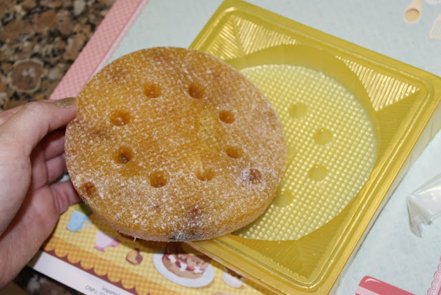 E o gosto ? Tem gosto de NADA. Nada com nada. Bom, pra não dizer que não é de nada, aquelas partículas no meio do bolo, que devem ser as sementes de lótus, tem um gosto que lembra um pouco castanhas. Mas o bolo em si tem gosto de isopor. Muito ruim.