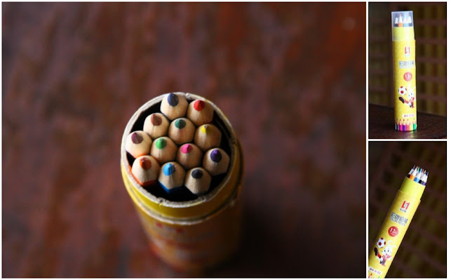 Olha que máximo pra carregar ou pra deixar no meio da área de estudos sem atrapalhar. E como o tubo vem com aquela tampa protetora (foto pequena da direita), as pontas ficam protegidas. Nesse tubo com 12 lápis de cor eu paguei $ 1,35.
