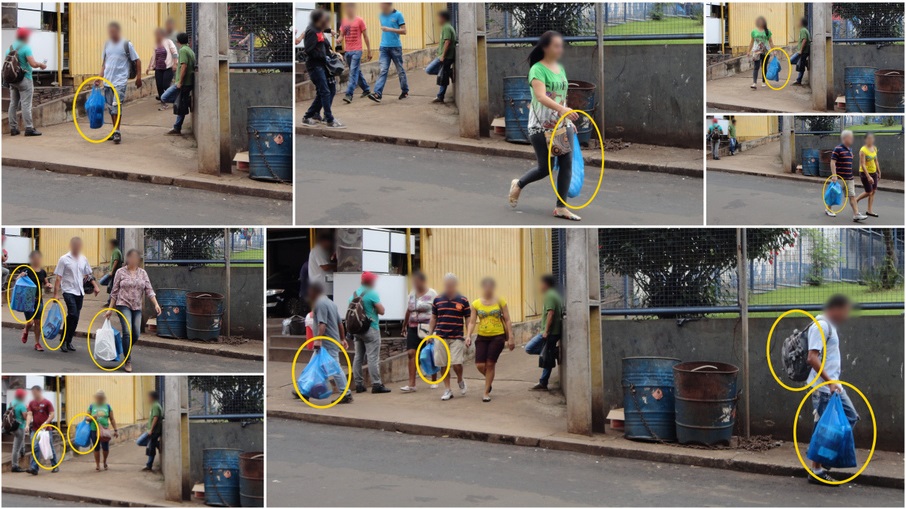Na hora de ir embora, enquanto esperava meu irmão me buscar, estava eu em frente a única saída de pedestres que temos quando saímos do Paraguai (saídas por veículos são ao lado). Antigamente, essa saída tinha um fluxo constante de pessoas saindo, abarrotadas de sacolas. Entre compradores com múltiplas pequenas sacolas, haviam muitos com sacolas grandes, caixas grandes a tiracolo, carregando carrinhos de feira … mas acima de tudo aquelas famosas sacolas de tecido sintético estampadas com peixinhos que identificam de longe qualquer “muambeiro” (em todos os sentidos: muambeiro turista e muambeiro sacoleiro também). Embora geralmente os sacoleiros prefiram a travessia de outros meios, a travessia de pedestre sempre foi utilizada por toda sorte de compradores.