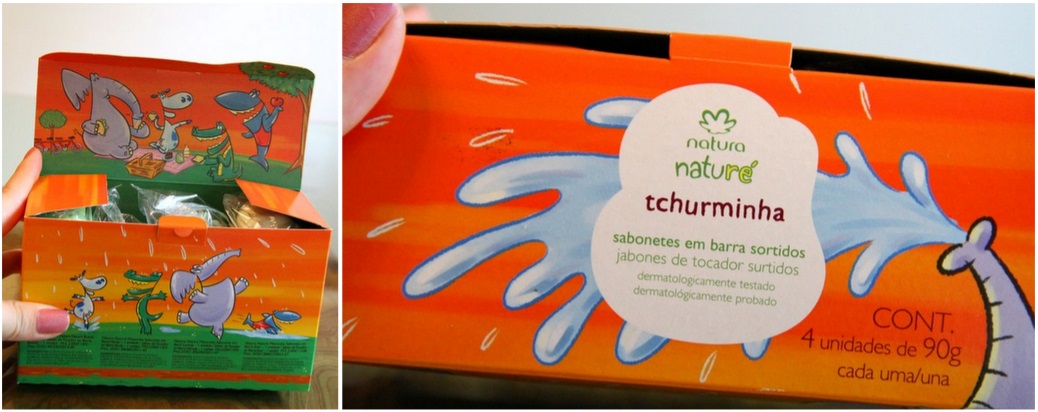 A Naturé tem vários outros produtos na sua linha. De sabonetes mesmo, tem outros kits. Tem o Mistureba, que traz também 4 sabonetinhos de 90 gramas (o mesmo desse de bichinhos) e cujos formatos são mais simples mas igualmente simpáticos. Já dá pra ir trabalhando formas e cores com as crianças menorzinhas. E tem também o Bololô que traz 3 sabonetes de 90 gr em formato de gotinhas.