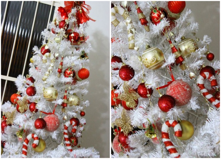 Vou dizer par vocês que essas bengalinhas parecem bem “vagabinhas” .. sabe aqueles enfeites purpurinados que dá a impressão que vão sair despencando glitter e pedaços pra tudo que é lado ? Pois ledo engano. Eles ficaram super lindos na árvore e quase não soltaram glitter nas minhas mãos pra manusear. Achei maravilhosos e o tamanho é lindo, dá um belo destaque na árvore.