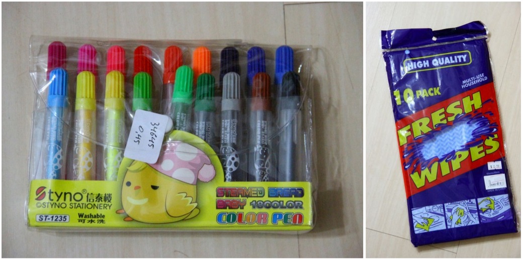 Também aproveitei o preço simpático desse kit de pincéis ($ 0,45) e trouxe pro Fefê desenhar e pintar.