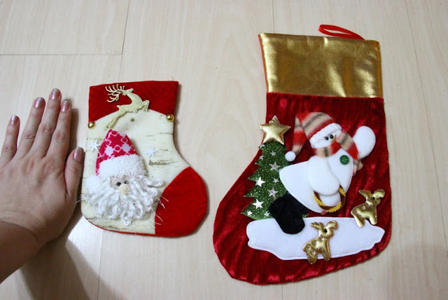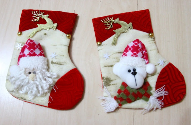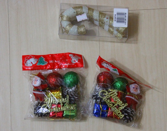 Bom, além dessas meias, comprei também alguns enfeitinhos desses bem basiquinhos pra pendurar na árvore. Ano passado usei desses mesmos kits tanto pra pendurar como também pra confeccionar enfeites de mesa e a nossa guirlanda de fotos de família. São bem gracinha e custaram muito pouquinho: apenas $ 0,15 (centavos de dólar !!!).