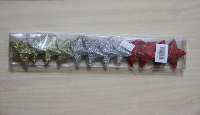 E ainda falando em enfeites, comprei também esse kit com estrelas cheias de brilho, também pra pendurar na árvore. E esse foi mais um item que custou apenas $ 0,15.