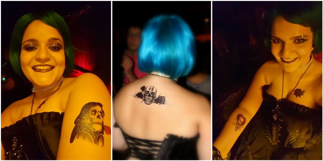 Acabei por fim aplicando 4 taatoos. Ficou realmente show. A aplicação é muito fácil e não tem risco de sair errado ou borrado se você seguir as instruções direitinho. E o melhor: pode pular a vontade, pode suar, pode fazer a maior festa : não sai ! Elas só foram saindo no decorrer dos outros dias usando bucha e sabão e esfregando com vontade pra poder tirar.