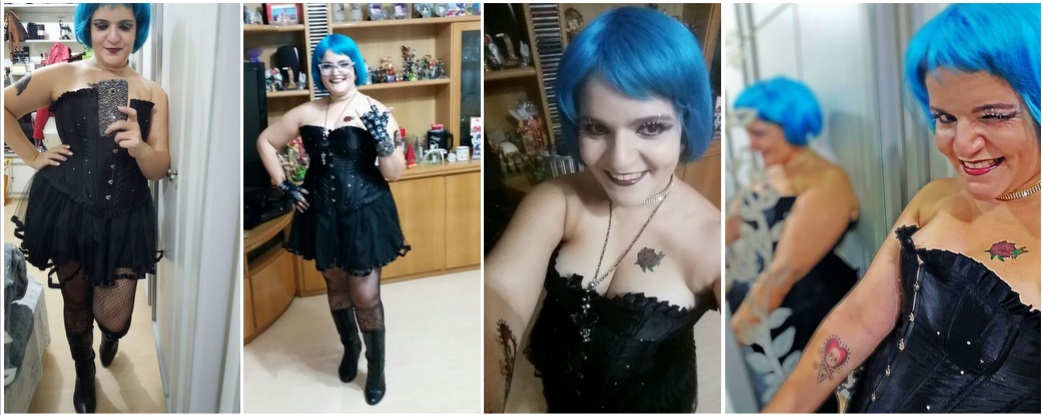 E esses aqui foram outros “apetrechos” que me ajudaram a montar o look: os cílios, as tatoos, a peruca. Vou mostrar em detalhes tudo isso numa outra postagem sobre comprinhas no Paraguai ok. Aí conto pra vocês o preço de tudo.