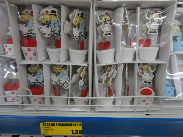 Mas na minha última ida ao Super K encontrei um canto da loja recheado de itens decorativos e também lembrancinhas para serem usados em chá de bebê, festa de casamento, festa de formatura e outros. Achei bacana que a diversidade é grande e os preços camaradas. E próximo deste setor tem também vários itens para uso em festividades, tipo balões, pratinhos ,coisas assim.