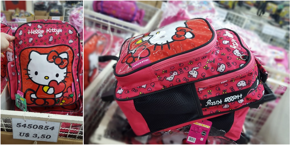 Começo contando pra vocês dos muitos itens da Hello Kitty que tinham por lá. De bolsas, a bolsinhas, estojos, mochilas grandes, mochilas pequenas, mochilas pra crianças bem pequerruchas … tem de tudo !