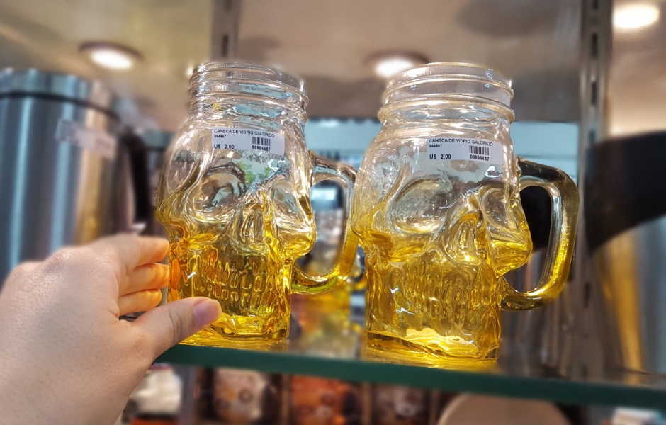 Uma outra coisa bacana que vi na Casa China (todos esses últimos que mostrei são de lá) foi essa caneca de caveira. Eu já tinha visto no Aliexpress e tinha ficado tentada a comprar pro Halloween … no final passou e nem me animei mais por conta do medo do frete e de vir quebrado. Agora dá pra ter um visual bem rock’n roll na sua estante por um precinho camarada: só $ 2,00 cada caveira ! E eu achei mais legal ainda essas pois tem esse tom dégradé.