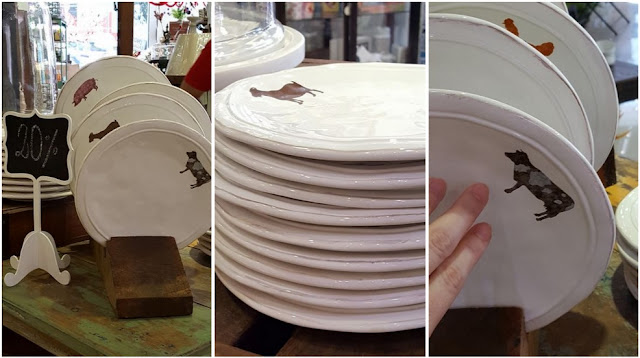 Estou falando em jogo pois cada peça é de um animalzinho mas na verdade vários destes itens de jantar e louçaria lá não são vendidos em conjunto. Ou seja, você pode comprar separadamente. Essas louças mesmo tinham os pratos grandes e os menores. E outra coisa fabulosa que tinha era esse pratinho pra servir linguiça ou torresmo, em forma de porquinho:
