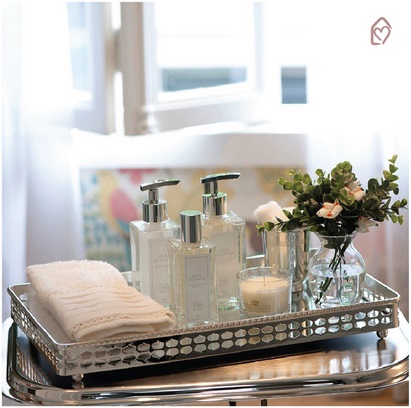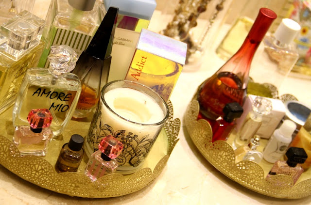 Pesquisei bandejas para perfumes em diversos lugares na internet e encontrei coisas muito lindas e encantadoras. De cores variadas, românticas, chics, moderninhas, de visual clean, espelhadas, com detalhes em inox, em madeira e pérolas … opções não faltam. O que achei falta foram de peças bonitas que se encaixassem num orçamento apertado.