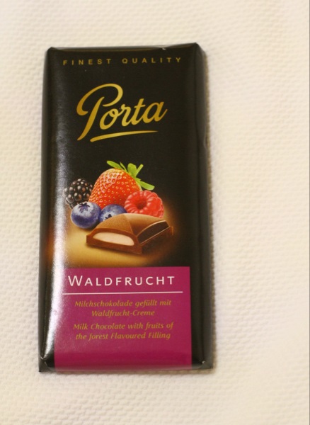 E porque eu realmente amei esse chocolate Porta (falei dele no meu vídeo “Experimentando comidas estranhas do Paraguai“) eu agora comprei um outro sabor (de frutinhas da floresta … hmmm, não vejo a hora de degustar !).