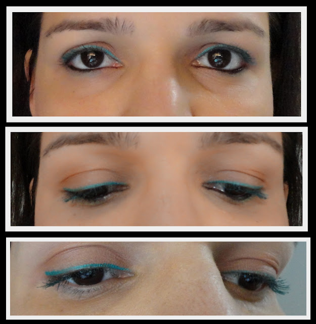 E vou contar uma segredinho que vocês não vão acreditar: na sexta-feira última, quando fiz a aplicação do verde, e 2 horas depois fiquei com dó de tirar e fui maquiada pra academia (sim, A LOUCA !). Pois bem, 40 minutos de caminhada em intensidade moderada depois, base escorrendo (sim, a LOUCA mesmo !!!!) … cheguei em casa, o delineador intacto. Maravilhosamente lindo. Ou seja, fixação ótima.