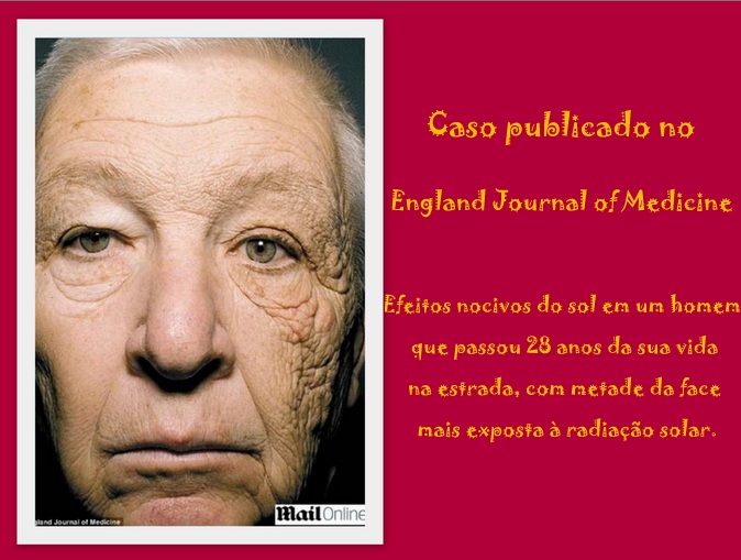 Tem uma foto que circula na internet faz um tempo, mostrando o rosto de um caminhoneiro que passou anos na estrada … portanto com um lado sempre muito exposto ao sol. O resultado é uma pele envelhecida do lado exposto: