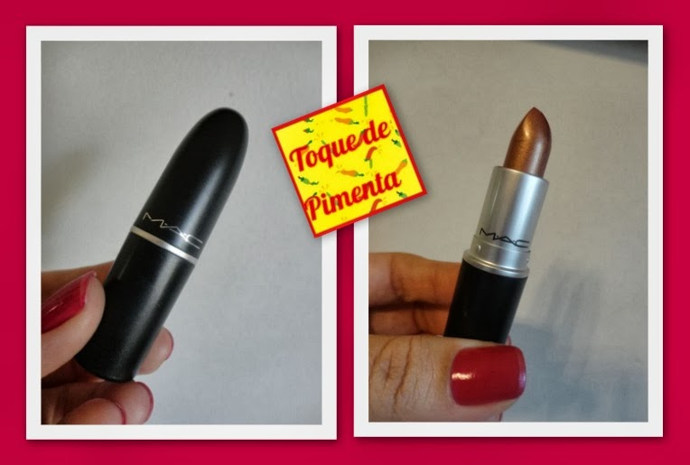 E já que eu estava na Monalisa, não tinha como não dar uma passadinha no stand da MAC. Fiquei doida com cores. Até então tinha tido a oportunidade de experimentar os produtos pra compra, pois as lojas do Paraguai não tem demonstradores da Mac. Me joguei em busca de uma cor que fosse diferente dos batons que eu ultimamente vinha usando, e dentre tantos batons deslumbrantes, acabei optando por este meio bronze, lindo, lindo: