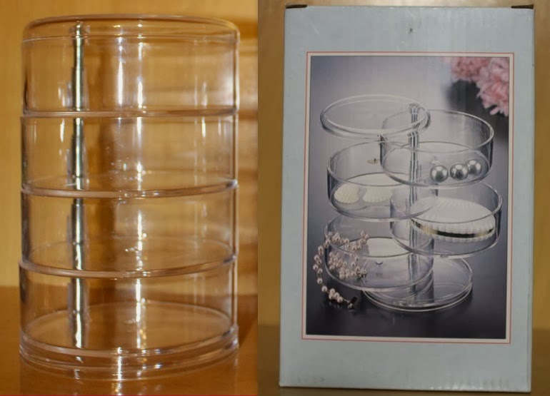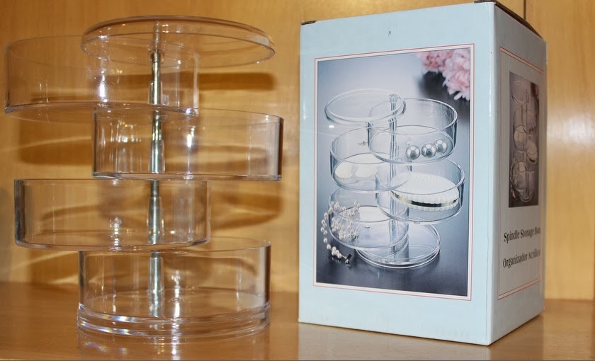 Dessa vez comprei um que eu não tinha nenhum parecido ainda: um em formas circulares, do tipo gavetinhas que abrem pros lados. Esse eu comprei naquela primeira loja que aparece no vídeo, onde eu mostro os organizadores e maletinhas, logo ao entrar no Shopping Americana.