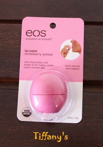 - Lip Balm da EOS. Além do desing lindo, as opções de aromas são deliciosas. Esse é do exótico sabor “sorvete de morango”. Delícia, hein ? Comprado na Tiffany’s, também no Shopping Vendôme. Apenas $ 5,00 doletinhas.
