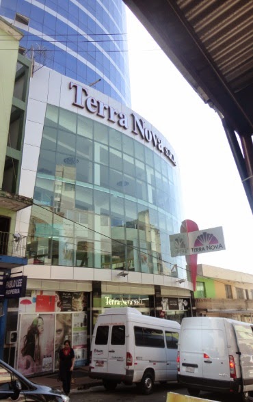 Nesta foto vocês podem ver as costas do shopping, a entrada da loja S.A e a escadaria onde tem a placa.
