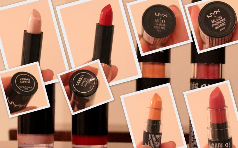 Confiram no detalhe as cores dos batons da Nyx escolhidos: Athena, Chaos, Tea Rose e Forbidden Interdit.