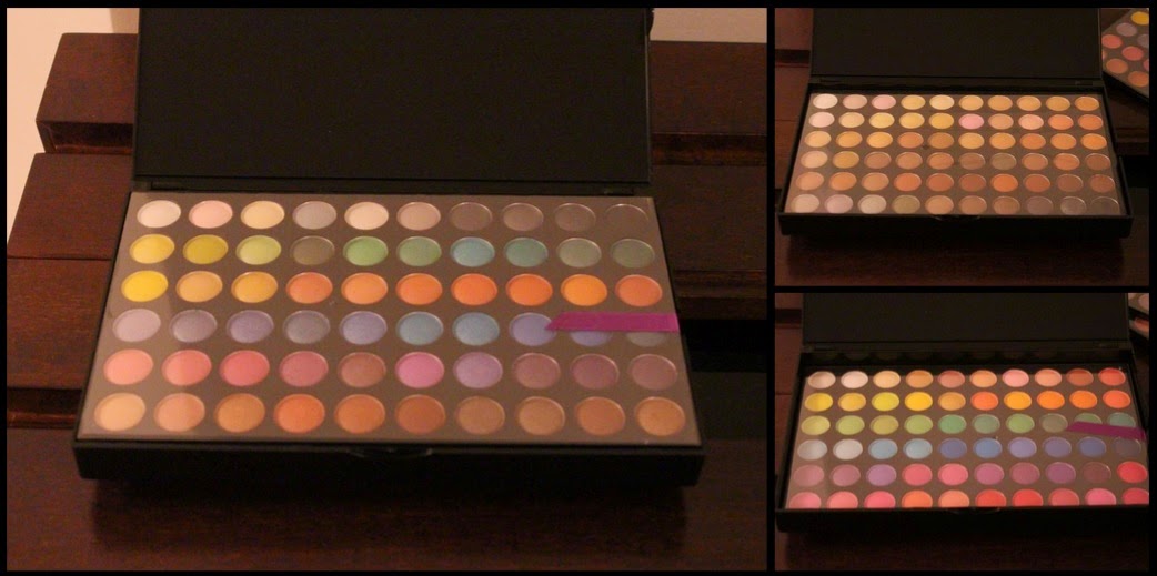 Vou começar mostrando a paleta de sombras da Manly, que é muito requisitada para quem visita o Paraguai. A minha amiga comprou uma de 120 e uma de 180 cores, ambas na loja Amadeus. Na de 120 cores ela pagou $ 15,00 e na de 180 cores pagou $ 25,00. Esta foto abaixo é a de 180 cores. Ela vem com 3 andares de sombras, que são bem diferentes entre si. Por conta da baixa qualidade da foto a primeira e terceira ficaram parecidas mas elas tem tonalidades bem diversas entre si.