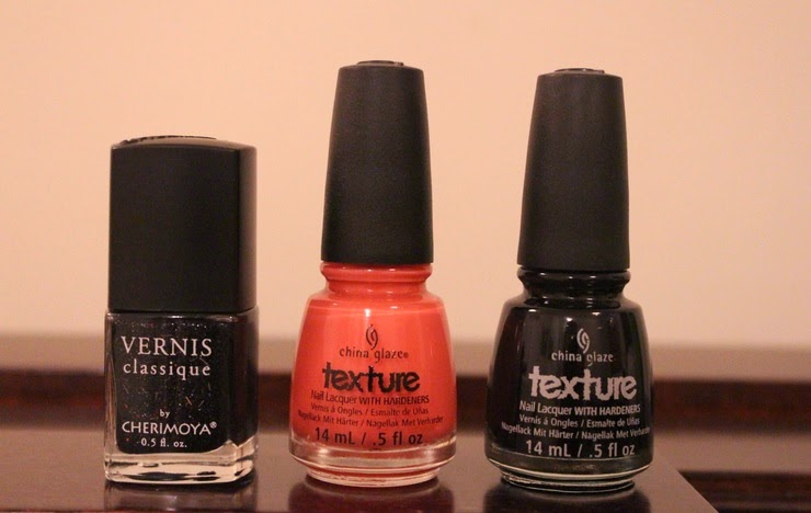 E agora os esmaltes. Notem que esses dois esmaltes da direita são esmaltes com textura. Ou seja, daqueles que ficam parecendo concreto ou asfalto. A primeira vez que usei esses esmaltes com textura estranhei um pouco mas passado o estranhamento inicial, foi amor total. E olha que o meu foi super elogiado. Acho que a Lisi fez excelentes escolhas. Já esse esmalte Vernis é todo de glitter.