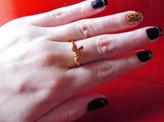 Outra peça que comprei foi um anelzinho de lacinho. Eu queria muito outros anéis pequeninos pra usar junto com os meus grandões. Me dei conta que eu ou tenho anel super vistoso ou então os pequenos de falange. Mas não tenho anéis normais mas pequeninos. Então me encantei com essa opção de lacinho.