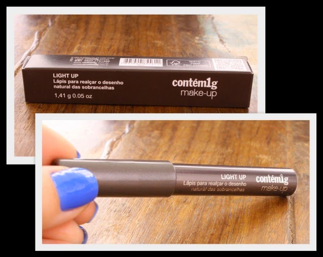 Outro produto que adorei foi esse lápis para iluminar a sobrancelha. O nome dele é Light Up e você usa ele pra dar aquela iluminada abaixo da sobrancelha, realçando seu contorno. Eu já tenho um lápis iluminador que adoro, mas ele tem bastante brilho e por isso eu raramente uso ele de dia. Geralmente eu uso na verdade uma sombra da Contém 1g (já contei sobre essa sombra neste post