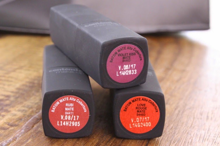 Eu amo os batons da Contém 1g por conta da durabilidade. Eles fixam bem, ficam bem sequinhos na boca e duram bastante. Acho que o custo benefício super compensa. Aliás, os batons custam R$ 38,00.