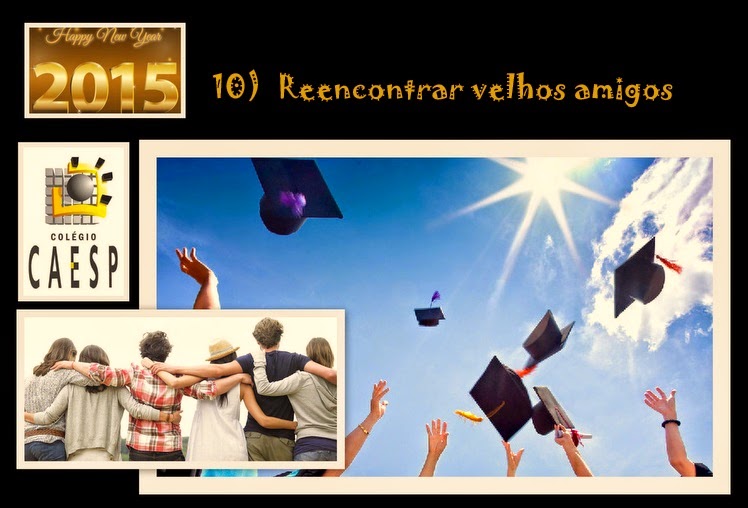 Outro objetivo pra esse ano é realizarmos a festa de reencontro entre meus colegas de colégio. Eu estudei durante toda minha infância e adolescência na mesma escola (exceto Jardim !) e foi uma época maravilhosa pra mim. Conheci muita gente bacana e tive alguns colegas que me acompanharam por anos também na escola. Mas como sempre acontece na vida, o tempo passa e vai distanciando as pessoas, o vento levando cada um pra um projeto de vida que não cruza com os demais. Como a festa dos 10 anos não saiu, então agora espero que a de 15 anos saia.